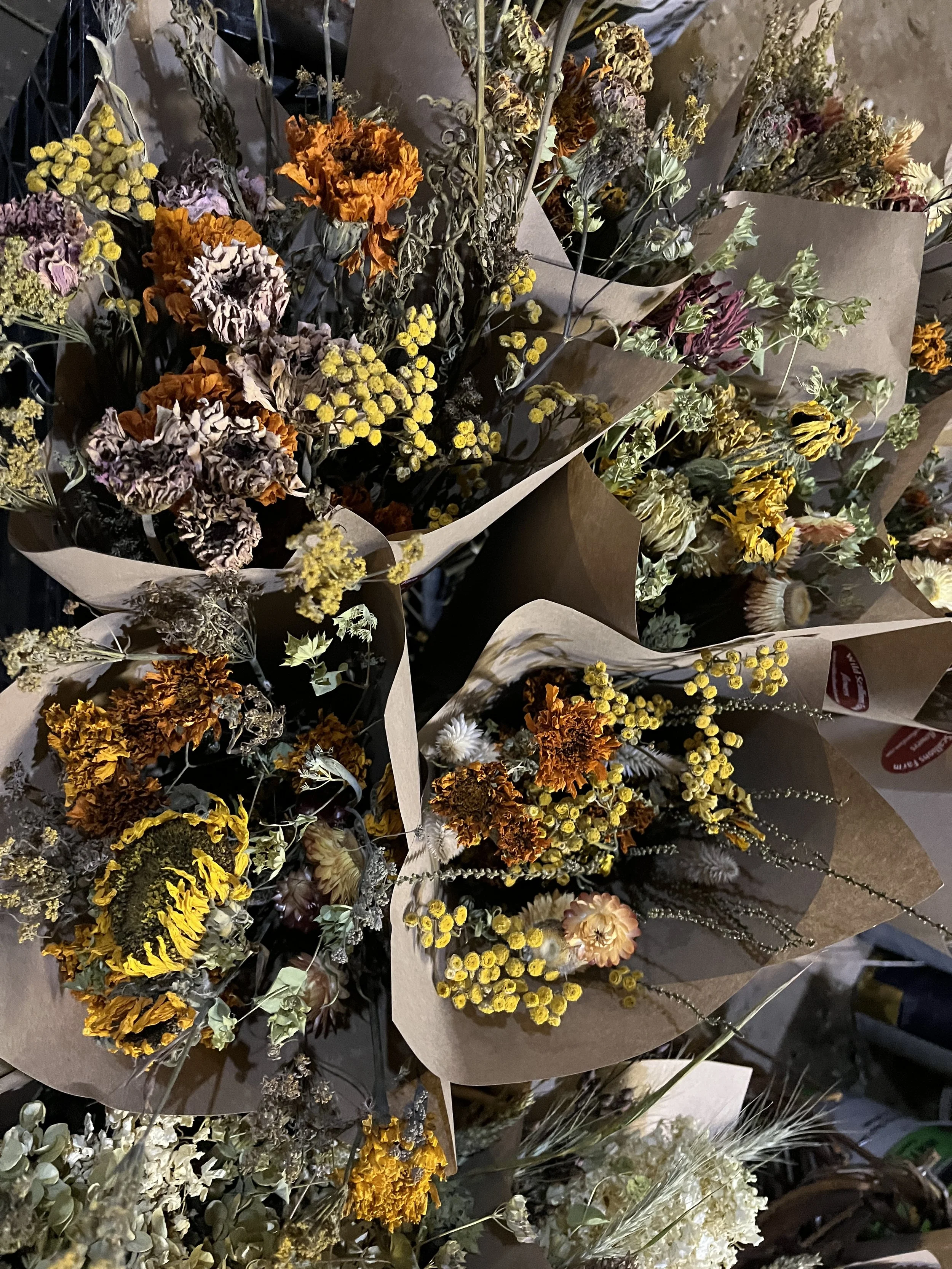 We will also have a lovely mix of dried flower bouquets and a handful of fresh bouquets featuring the first hardy winter flowers.